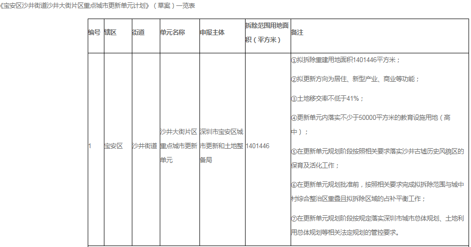 深圳市(shì)規劃和(h↓&♠♣é)自(zì)然資源局發布關于《寶安區(qū)沙井街(jiē)道(dào)沙井大(φ★dà)街(jiē)片區(qū)重點城(chéng)市(shì)更新單元計(jì)劃¥φ¶₽》的(de)公告,公告項目已經通(tōng)過批準。